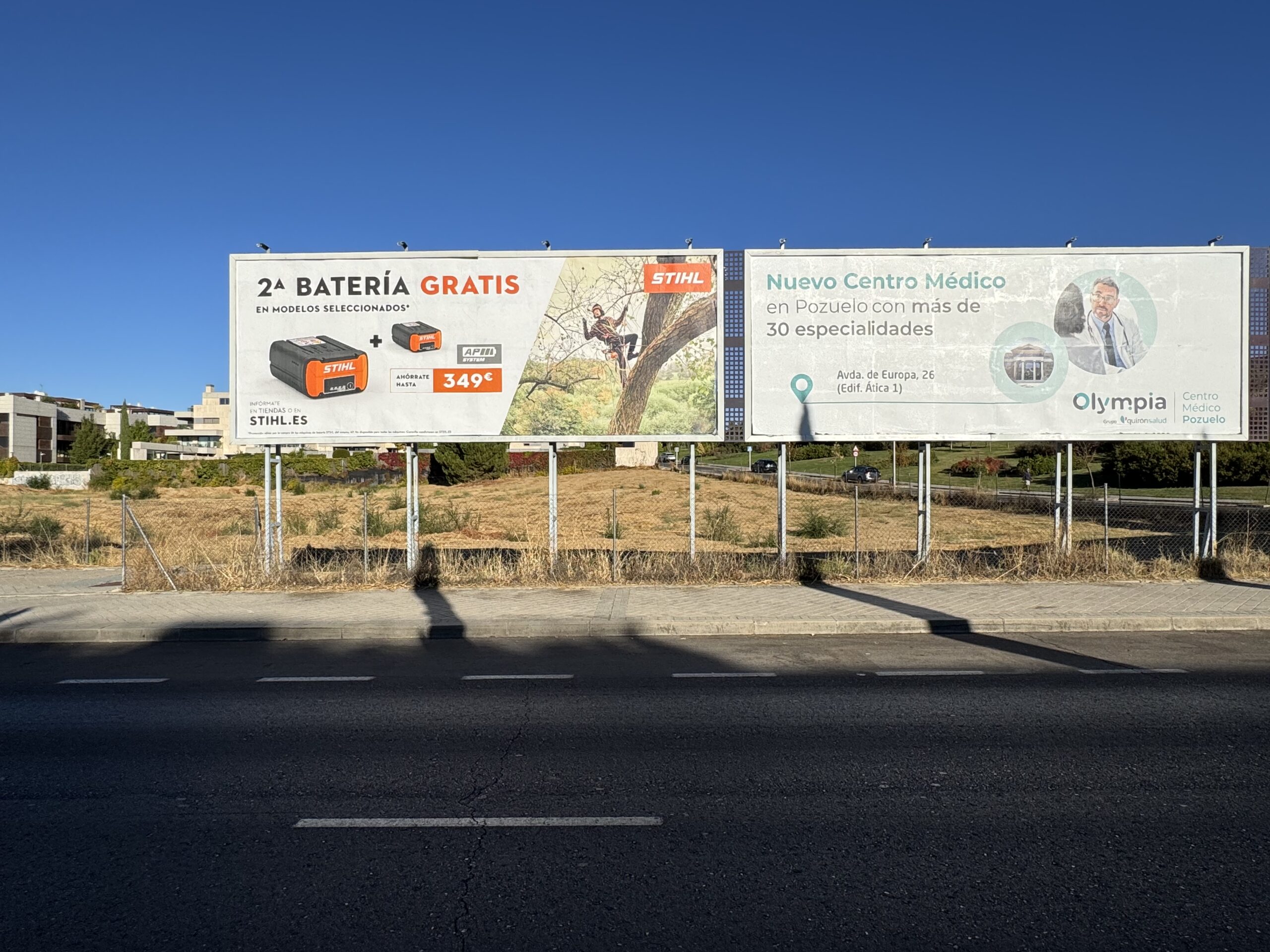 Disponemos de dos exclusivos soportes digitales de gran formato (4x1,5 m) en Alcorcón, ubicados en puntos estratégicos para garantizar máxima visibilidad. Seguiremos ampliando esta red para ofrecerle más opciones en el futuro.